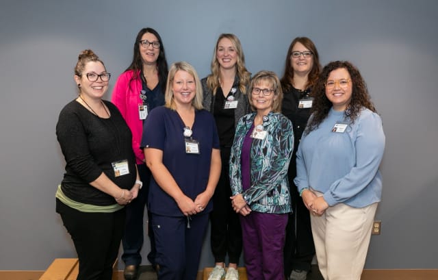 Pictured above, back row, left to right: Janeen Brule, Alisa Leas, and Leann Kawlewski. Front: Lindsey Johnson (contracted employee), Haley Massmann, Becky Peterson, and Brianna Iverson. Not pictured: Tanya Kildal, Dru Olivier, Jessica Bak, Kaylee Bergquist, Kelly Halvorson, Kevin Waldhausen, Logan Klipping, Maggi Lund, and Amy Broden.